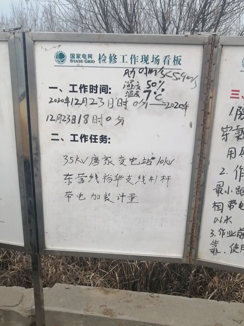 2020年12月23日,10kV東營線裕華支線1#桿帶電加裝計量,下面是施工現(xiàn)場情況: