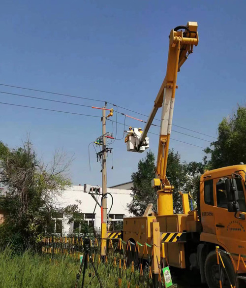 2023年7月5日,華昌電力公司施工人員進(jìn)行10kV光伏Ⅱ線工業(yè)園乙支線帶電作業(yè)操作現(xiàn)場。