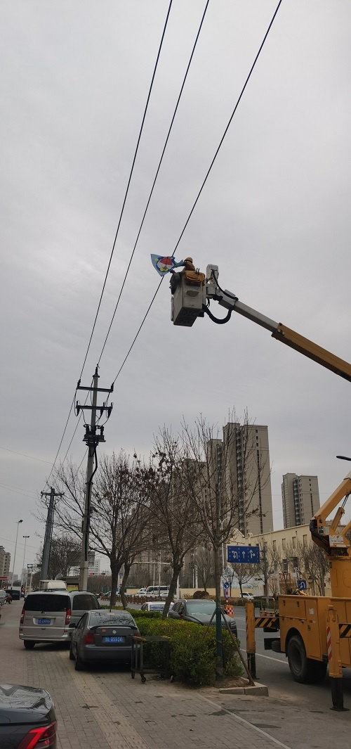 2024年3月24日,車站線2號桿清理導(dǎo)線上的風箏,下面是現(xiàn)場情況圖:
