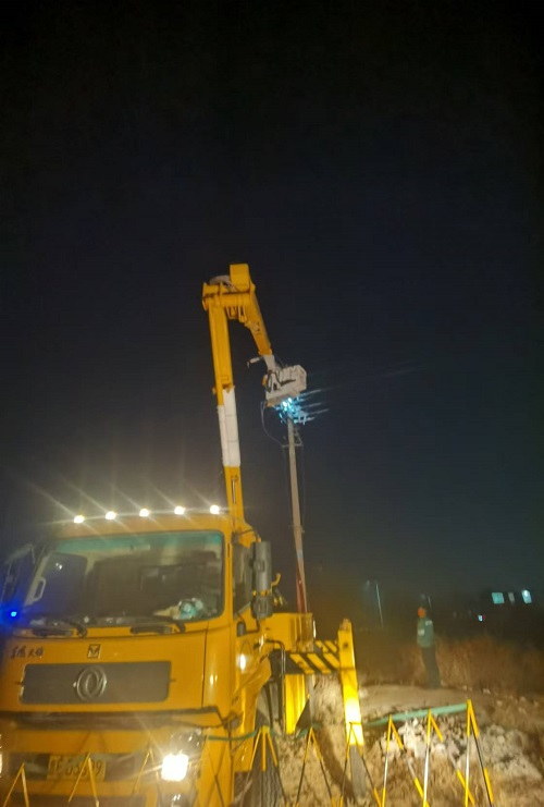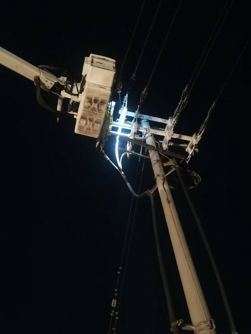 2024年12月31日,10kV東營線001#桿帶電更換刀閘,下面是施工現(xiàn)場: