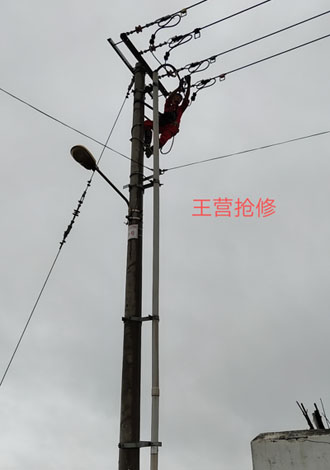 東營華昌電力工程有限公司積極應(yīng)對斷電問題,雨中,臺風(fēng)中安排工作人員進行積極搶修,保障了市民的用電問題。