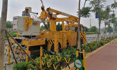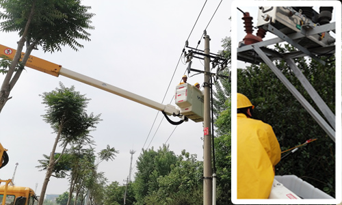 2020年6月16號,東營華昌電力工程有限公司工作人員,進(jìn)行現(xiàn)場帶電作業(yè),下圖為辛天線22號桿拆處避雷器及引線,施工現(xiàn)場: