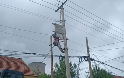 抗擊臺風“利奇馬”搶修傾斜電桿