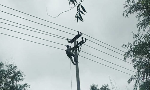 2020年8月16日,東營華昌電力工程有限公司10KV現(xiàn)河線搶修完成,送電成功,下面是現(xiàn)場圖: