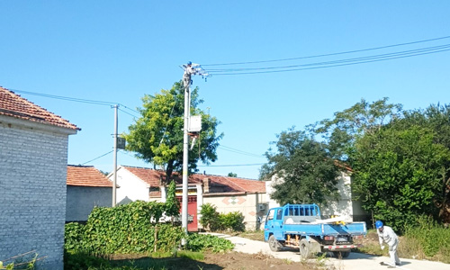 天高云淡,日麗風(fēng)輕——2020年8月22日,東營(yíng)華昌電力工程有限公司在辛集4號(hào)臺(tái)區(qū)表箱安裝現(xiàn)場(chǎng)。