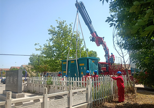 2023年6月1日,東營(yíng)區(qū)茶坡村更換箱變施工現(xiàn)場(chǎng),下面是現(xiàn)場(chǎng):