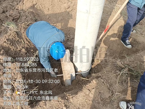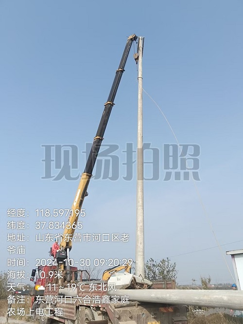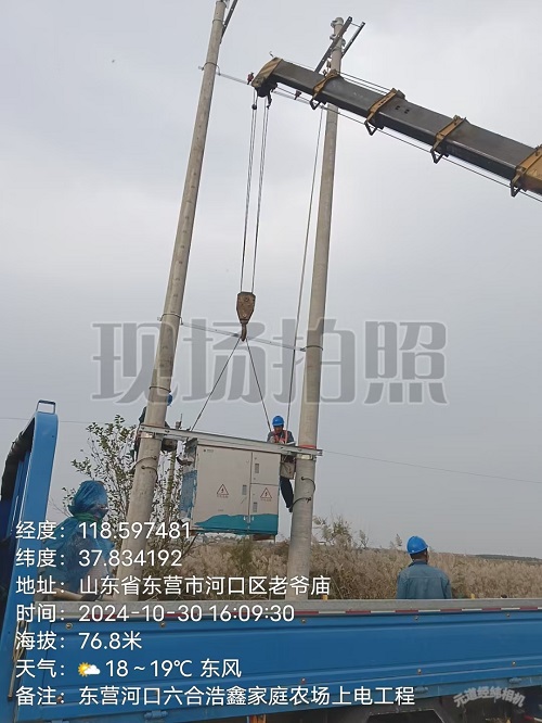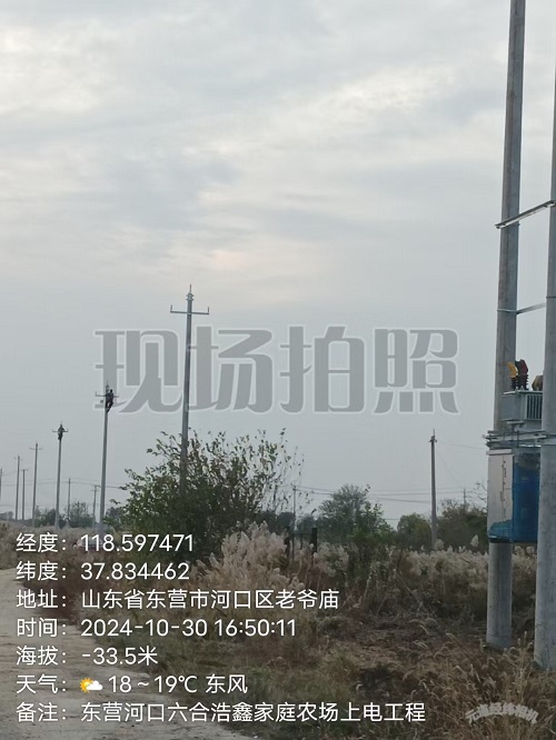 2024年10月30日,河口區(qū)浩鑫家庭農(nóng)場上電工程施工現(xiàn)場:
